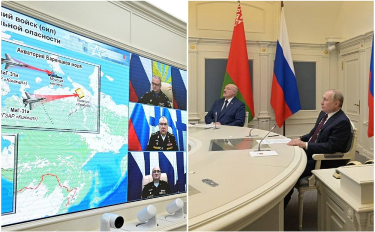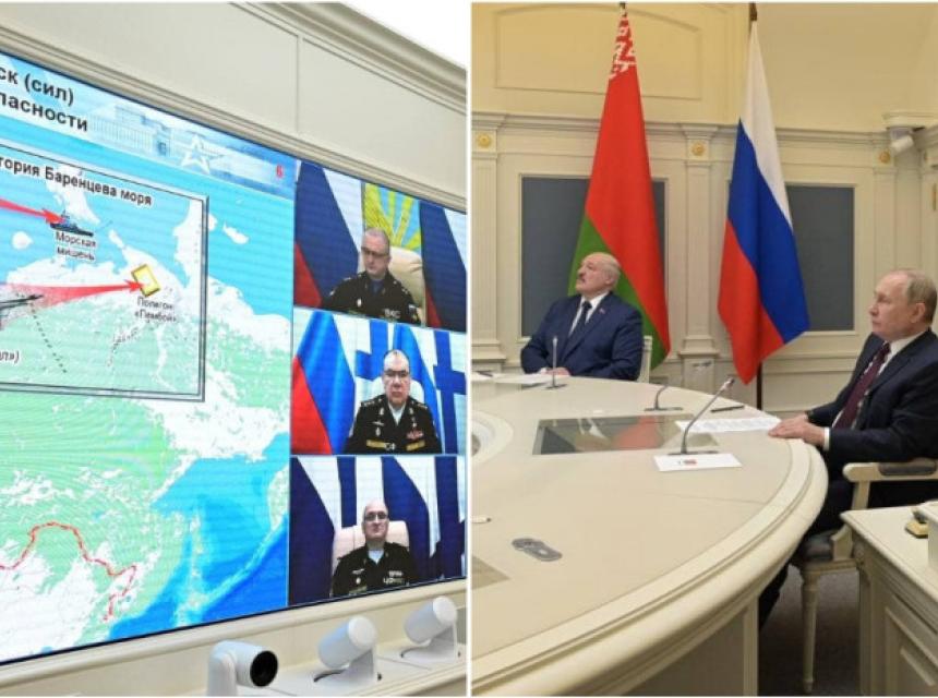 Putin je s predsjednikom Bjelorusije Aleksandrom Lukašenkom (Alexander Lukashenko) iz Centra za kontrolu situacije u Kremljskoj palati pratio lansiranje balističkih projektila u vježbi u kojoj su učestvovale snage nuklearne trijade.