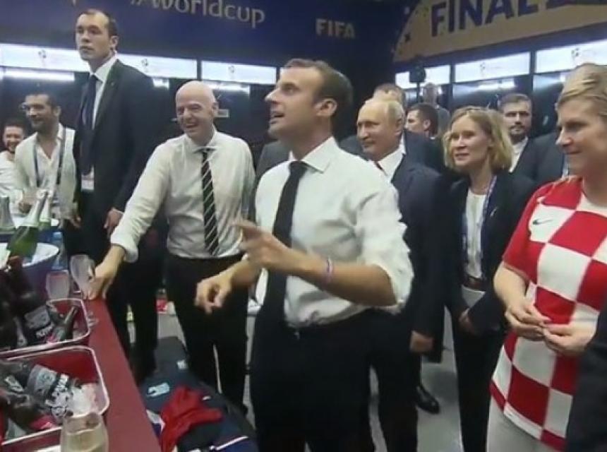 Francuzi su skandirali i Putinu i Makronu, Grabar-Kitarović im se obratila na njihovom jeziku i poručila: "Živjela, Francuska", što je ganulo "Trikolore", a u hrvatskoj svlačionici predsjednik Rusije je proveo kratko, pozdravivši se s drugom ekipom svijeta, uz zajedničko fotografiranje. Uostalom, pogledajte i sami.