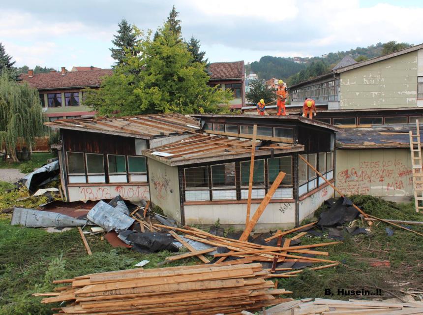 Lijepo vrijeme pogoduje izvođaču radova d.o.o. MEMIĆ GRADNJA na projektu Osnovna škola Cazin 1, pa se trenutno aktivno radi na demontaži dijela objekta poznatog pod nazivom "saće".
