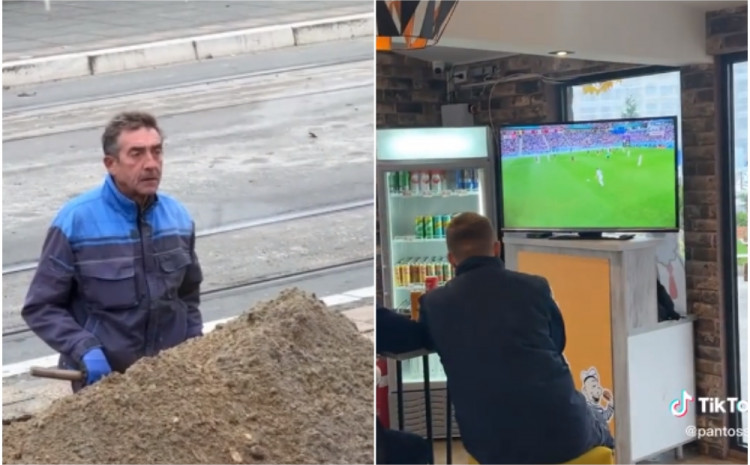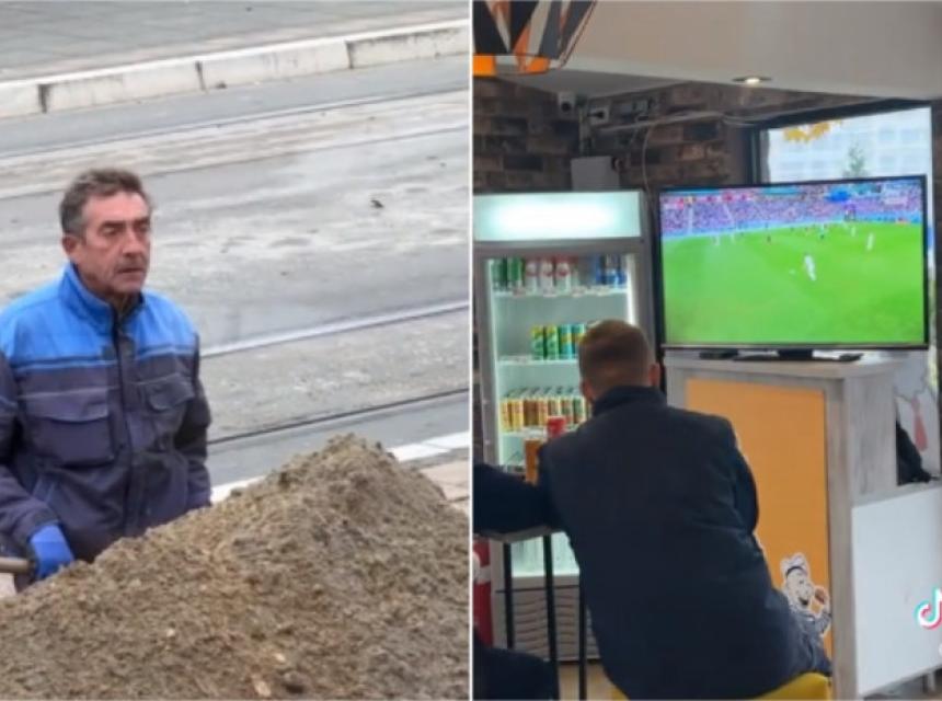 Tako se u jednom kafiću u Srbiji pratio meč Srbije i Kameruna, a jedan radnik je izvodio radove na ulici, pa je iz kanala provirivao u kafić kako bi i on gledao utakmicu.