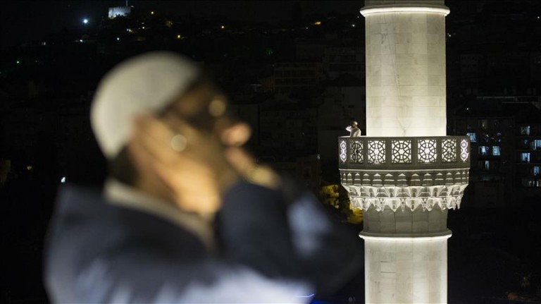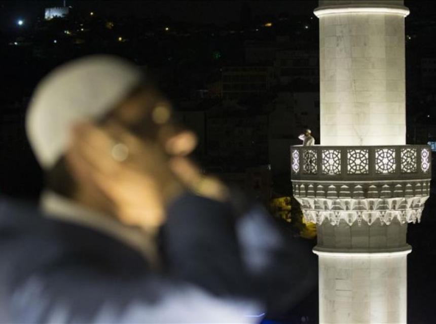 Čast da prvi prouči ezan, poziv za molitvu muslimanima, pripala je predsjedniku Islamskog kulturnog centra Abdurrahmanu Tamarji. Tom prilikom u centru su se okupili i brojni vjernici kako bi svjedočili ovom trnutku, tokom kojeg pojedini nisu mogli prikriti suze.
