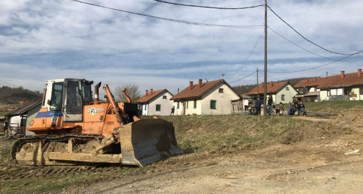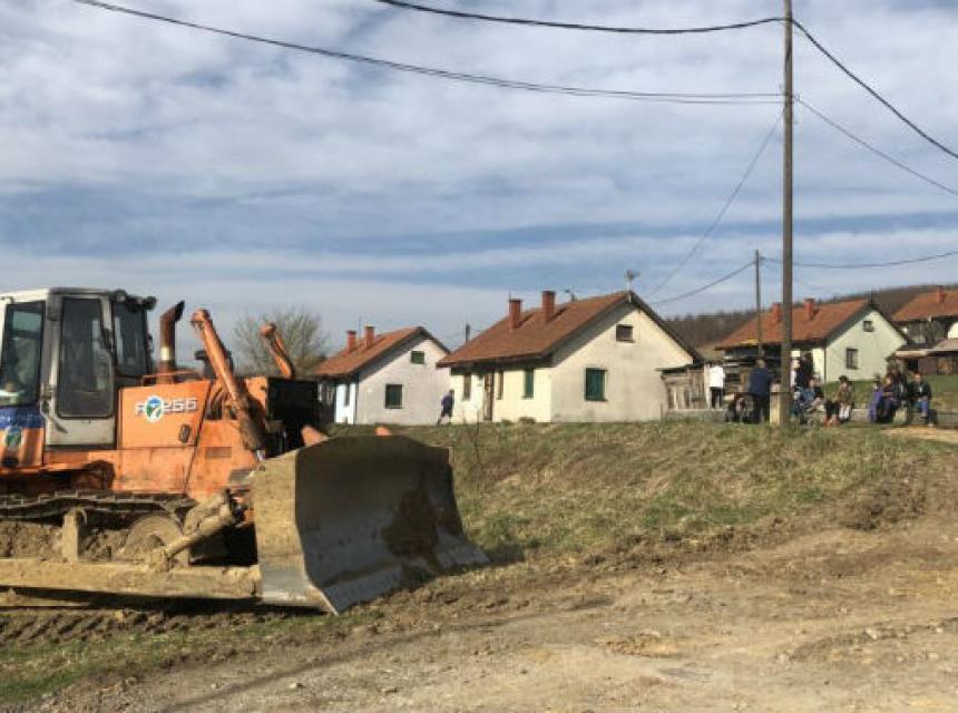 Poodmakla trudnoća nije spriječila Sanelu Krličević da se popne na građevinsku mašinu i na taj način sa drugim stanovnicima kolektivnog centra Vila u Tešnju zaustavi izgradnju puta pored oronulih jednospratnica u kojima ne postoje osnovni uslovi za iole pristojan život.