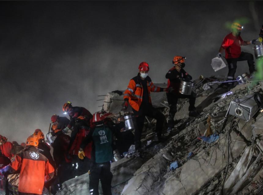 U Turskoj je uništeno najmanje 20 zgrada samo u gradu Izmiru, rekao je gradonačelnik Tunc Soyer za CNN Turk. Snimci iz Izmira pokazuju urušene zgrade, zgnječene automobile i hiljade ljudi koji kopaju po ruševinama u potrazi za nestalima.