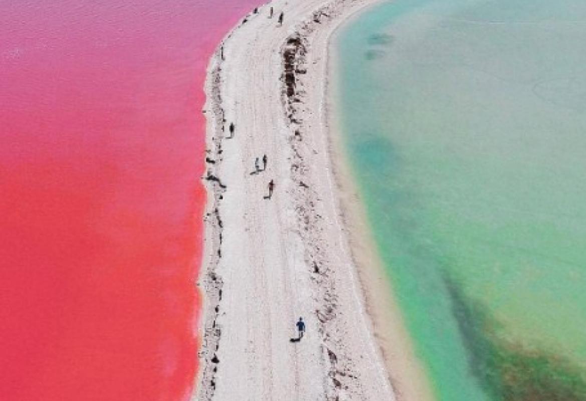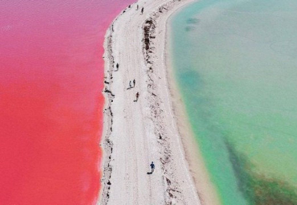 Malo ribarsko mjesto Las Koloradas na Jukatanu (Yucatan) u Meksiku ponosi se rozom lagunom koju okružuju nasipi od bijele soli.