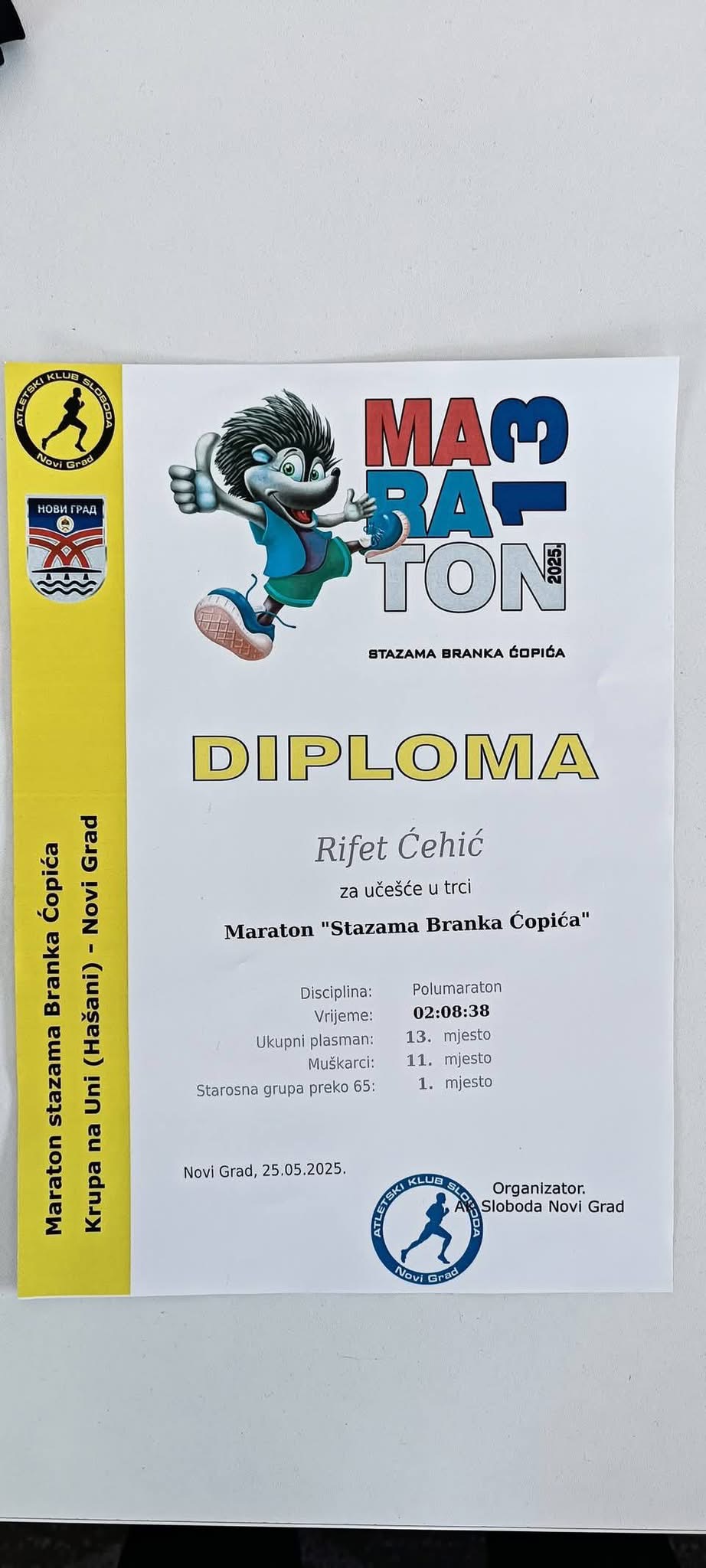Na 13. maratonu “Stazama Branka Ćopića”, održanom u Bosanskom Novom, Rifet Ćehić je trijumfovao u kategoriji 65+ i zasluženo osvojio zlatnu medalju. Ovaj iskusni atletičar, poznat po svojoj upornosti, disciplini i nevjerovatnoj kondiciji, još jednom je dokazao da nosi sportsko srce istinskog borca. Njegova posvećenost atletici i životu u pokretu inspiracija je kako mladima, tako i njegovim vršnjacima. Rifet ne propušta priliku da pokaže kako se i u trećoj životnoj dobi mogu postizati sjajni rezultati – uz volju, rad i iskrenu ljubav prema sportu.