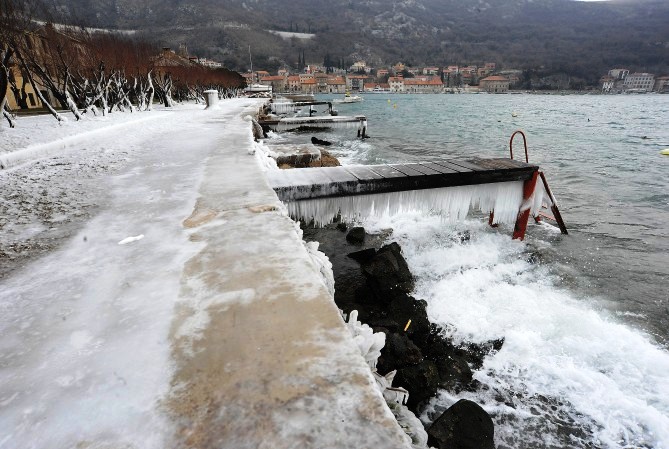 Sibirska hladnoća, snijeg i olujni vetar zaledili su i more u uvali Ivinj u Tisnom, a i gotovo cijela Istra i Kvarner su na temperaturi između minus tri i pet stepeni pa je more uz obalu zaleđeno i kod Poreča, Bakra i Povila.