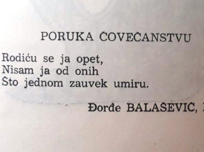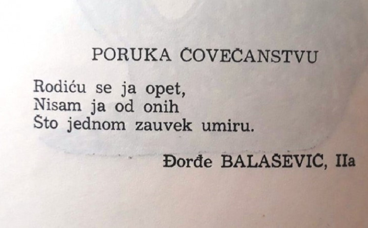- Rodiću se ja opet, nisam ja od onih što jednom zauvijek umiru - napisao je Đorđe u drugom razredu srednje škole.