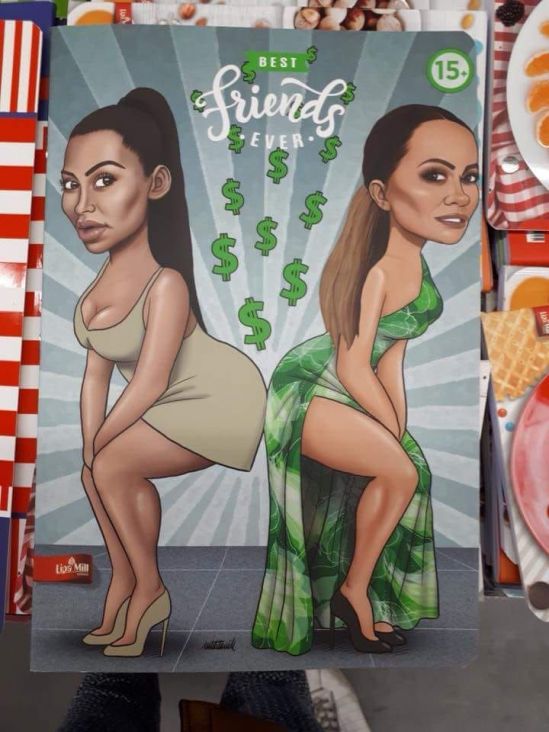 Iznad njih se zelene simboli dolara, a iznad svega toga piše "najbolje prijateljice zauvijek".