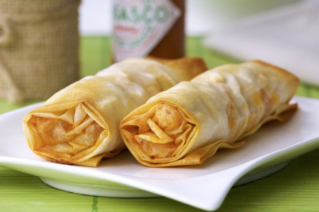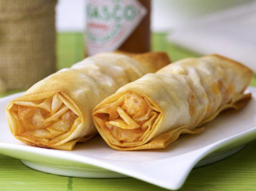 - Podijelite tijesto na trokute i filujte. Savijte i uvaljajte u otopljeni maslac, a potom u prezlu.
