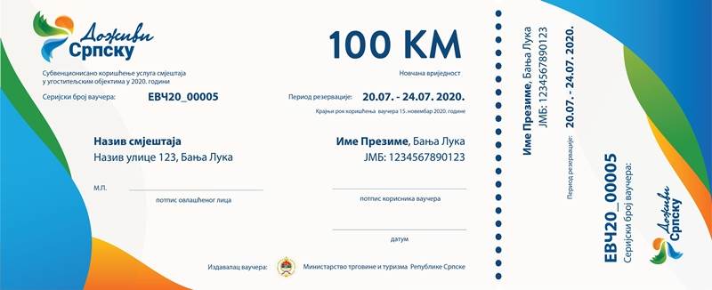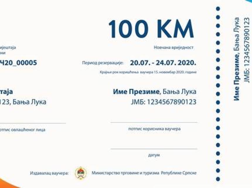 Turistički vaučer u iznosu od 100 KM može se iskoristiti u periodu od 15. juna do 15. novembra 2020. godine samo kod ugostitelja ili turističke agencije koji su upisani u evidenciju, a koja je dostupna na internet stranici ministarstva.