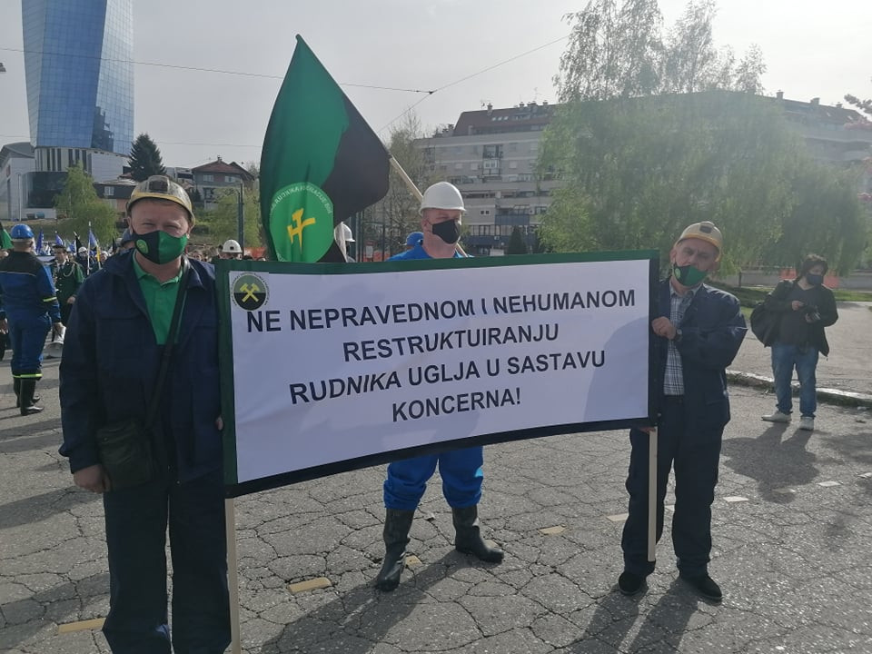 Kakanjski rudari okupili su se danas ispred Željezničke stanice u Sarajevu. Istovremeno, jake policijske snage nalaze se ispred zgrade Vlade FBiH, gdje će danas biti održani mirni protesti rudara.