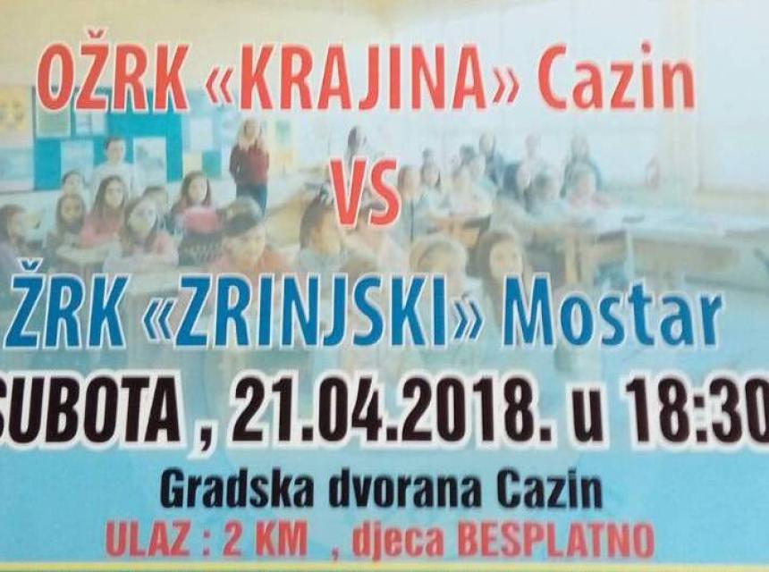 Omladinski ženski rukometni klub "Krajina" Cazin u subotu će odigrati utakmicu 15. kola Prve lige F BiH za žene, u kojoj će ugostiti jaku ekipi iz Mostara, ŽRK Zrinjski.