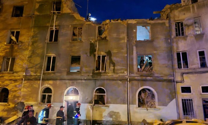 “Oštećeni su mnogi stanovi – više od 50”, rekao je gradonačelnik u kratkoj videoporuci. Dodao je da je uništeno i oko 50 automobila. Sadovji je rekao da su dvije osobe izvučene iz ruševina i da spasilački timovi nastavljaju potragu.