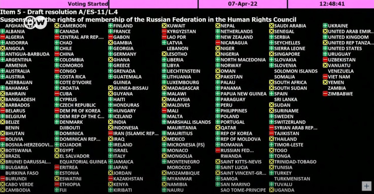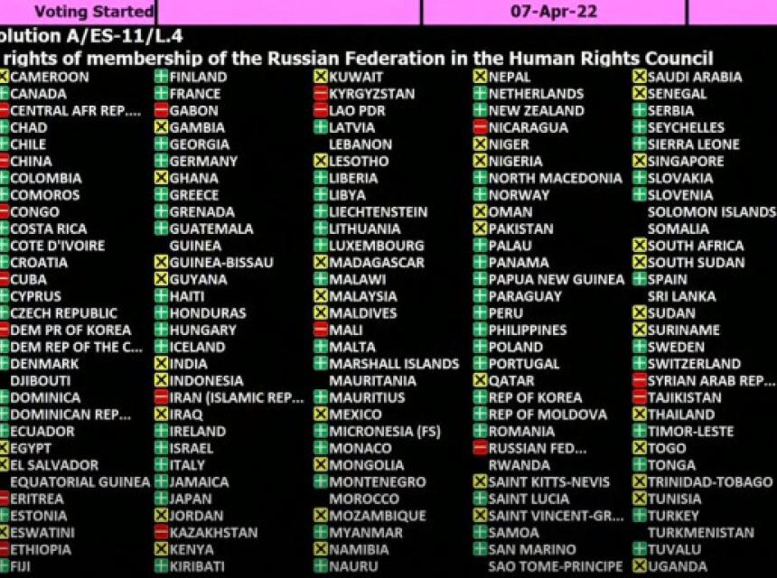 U Generalnoj skupštini Ujedinjenih nacija danas se glasalo o prijedlogu SAD da se Rusija suspendira iz Vijeća UN-a za ljudska prava zbog izvještaja o grubom i sistematskom kršenju ljudskih prava u invaziji na Ukrajinu.