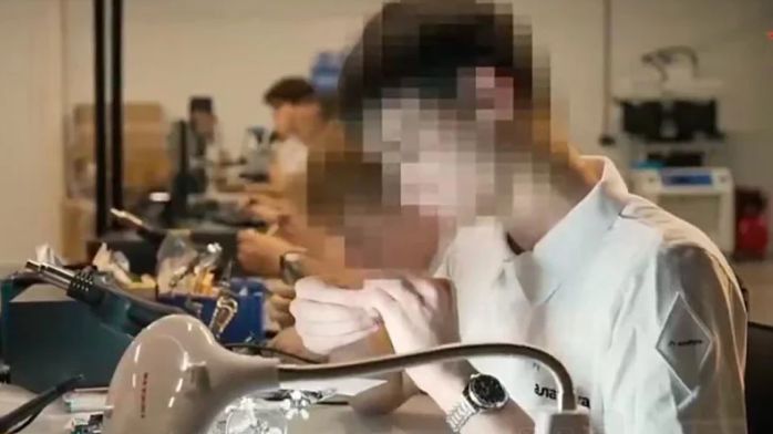 Na snimcima se vidi mladi radnici, uključujući i tinejdžere, s licima zamućenim radi zaštite identiteta, kako gledaju u ekrane, sklapaju komponente i testiraju dronove.