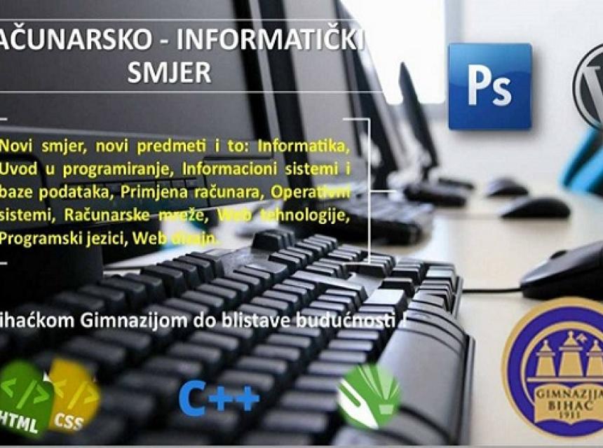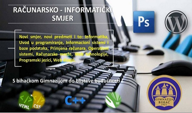 Javna ustanova Gimnazija „Bihać“ ove godine uvodi novi računarsko-informatički smjer s predmetima koji su kompatibilni sličnim smjerovima u školama Zapadne Evrope: informatika, uvod u programiranje, informacioni sistemi i baze podataka, primjena računara, operativni sistemi, računarske mreže, web-tehnologije, programski jezici, web-dizajn.