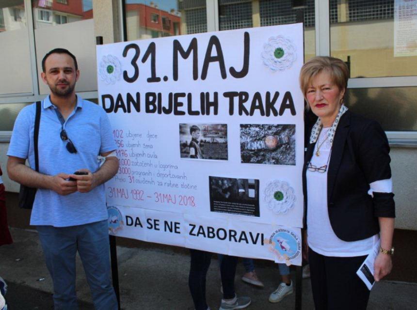 Kako nam je kazala prof. Merima Sijarić, direktorica škole, simboličnim vezivanjem traka žele podsjetiti na stradanja te ukazati na diskriminaciju koja je mnoge Prijedorčane te 1992. godine odvela u smrt.