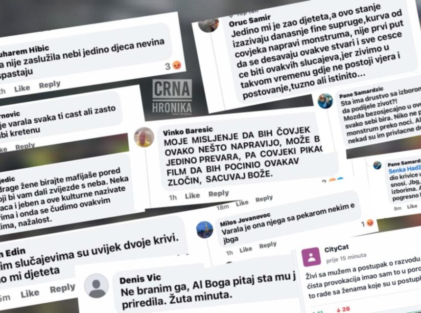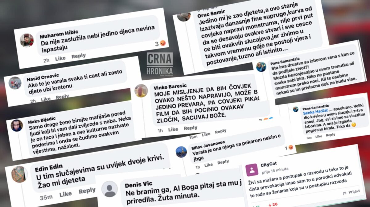 Ovo su samo neki od komentara na ovaj slučaj u Kalesiji… a na one slučajeve od prije je bilo puno više ovakvih komentara (jer nije bilo ubijene djece) … Za Nizamu… strašno je bilo koliko su je muskarčine krivile i branile ubicu.. i to se tek onako otvoreno piše… Ja sam po struci psiholog i ne mogu da vjerujem da se ne piše o ovako ozbiljnom problemu. Na temu femicida u BiH, mogu naći desetine imena koji javno brane ubicu. ” – izjavila je čitateljica portala Crna-Hronika.
