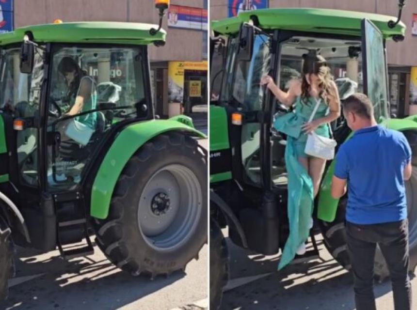 Traktor se zaustavlja, vrata joj otvara tata, a iz njega iskače prelijepa Tijana u zelenoj haljini i sa širokim osmjehom na licu. Tata je prati u stopu i ne skriva sreću i ponos zbog svoje mezimice, što se vidi na njegovom licu.