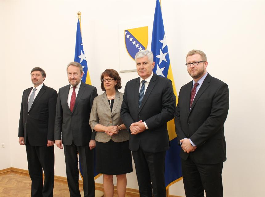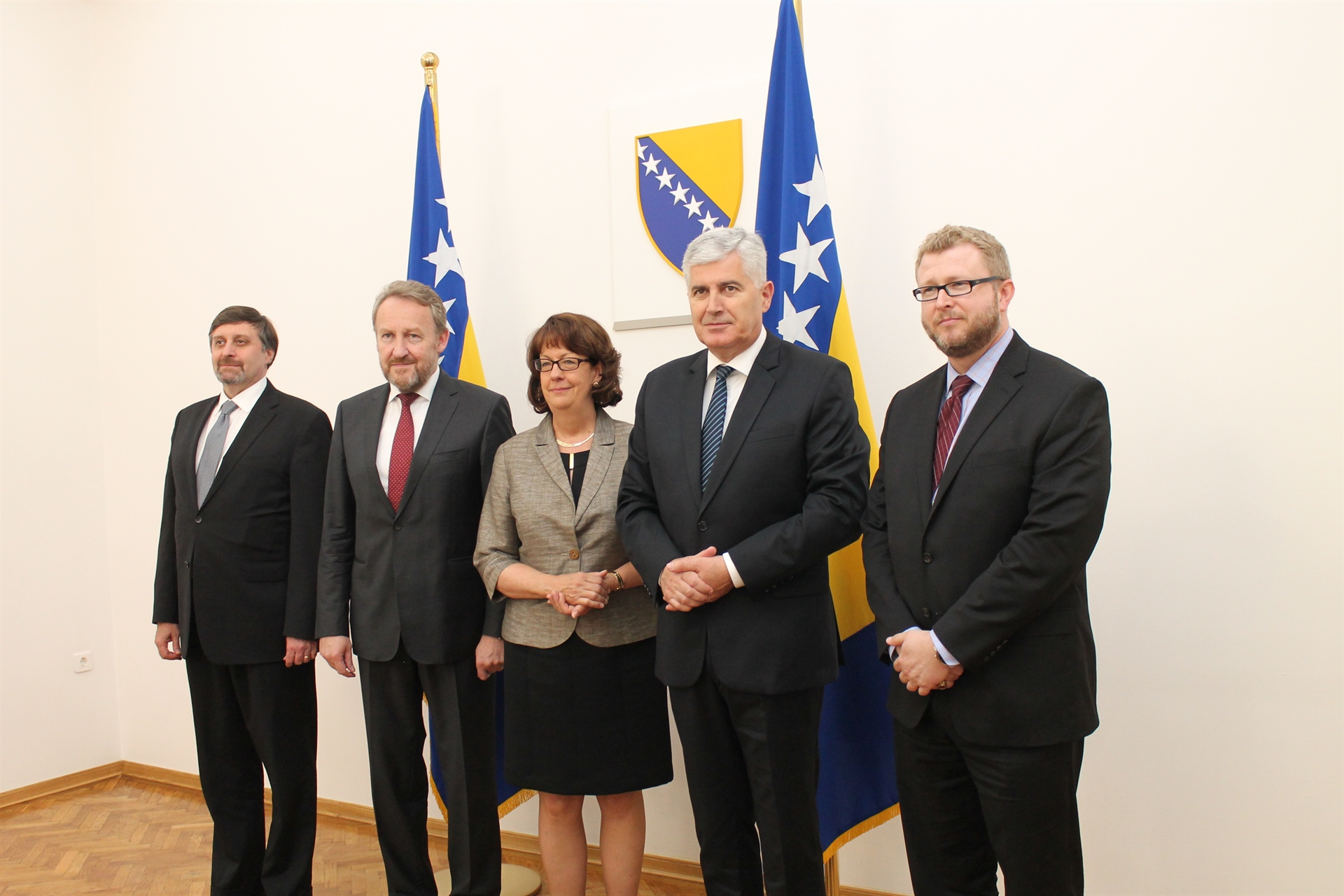 Predsjedavajući Predsjedništva BiH Bakir Izetbegović i član Predsjedništva BiH Dragan Čović primili su danas direktora za evropske poslove Vijeća nacionalne sigurnosti SAD-a Williama Barkleyja.