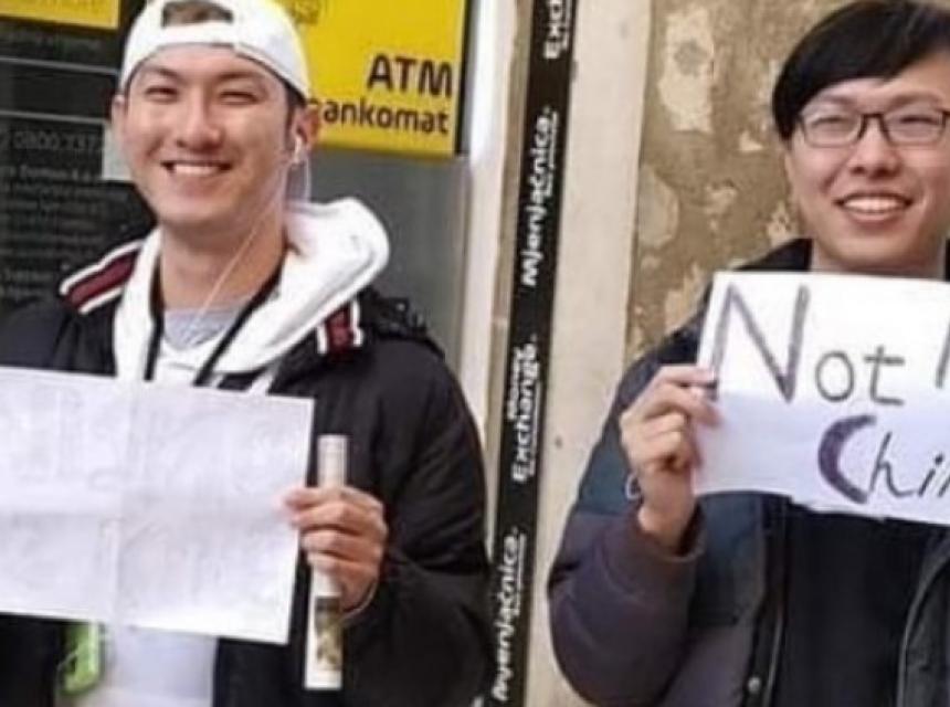 "Nismo iz Kine", odnosno "Not from China", natpisi su s kojima su dvojica turista danas pozirali u Dalmaciji.