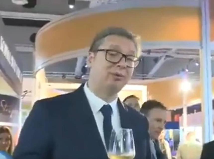 Prolazeći od štanda do štanda i degustirajući vina, Vučić je u jednom trenutku bio vidno pripit, ali se u televizijskim prijenosu pohvali kako može mnogo da popije.