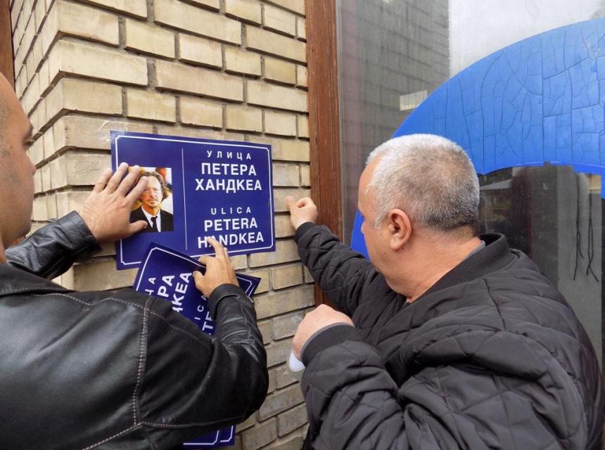 Aktivisti udruženja građana "Istočna alternativa" danas su na dvadesetak objekata u Srebrenici nalijepili natpise sa tekstom "Ulica Petera Handkea", ispisane ćiriličnim i latiničnim pismom, iako je prije nekoliko dana načelnik Srebrenice Mladen Grujičić kazao da njihov zahtjev neće biti podržan.