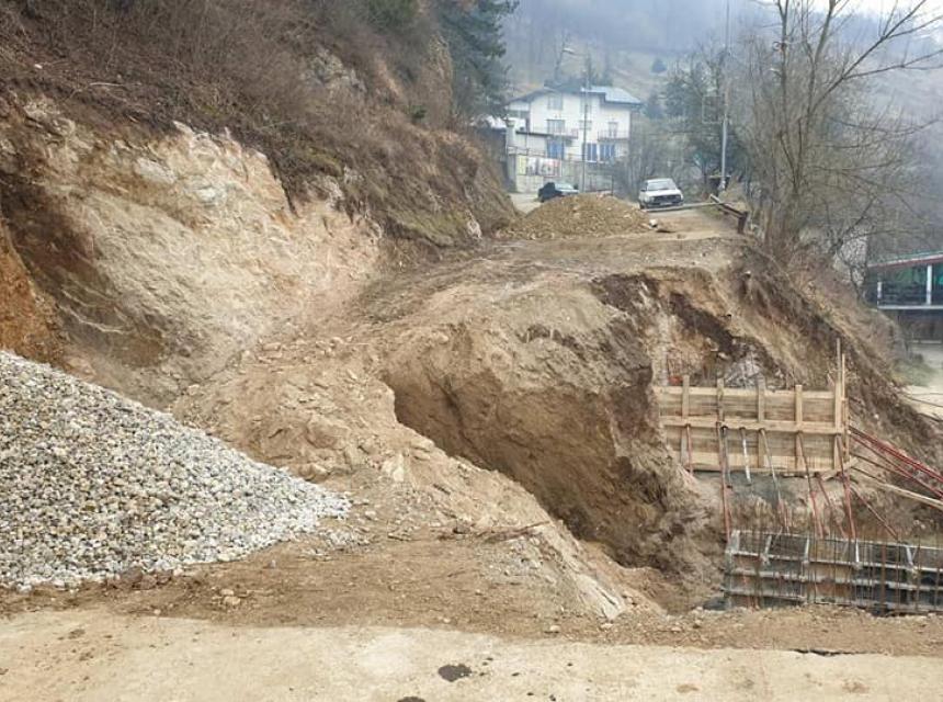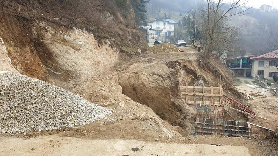 Vodovodna cijev pukla je uslijed aktiviranja klizišta na ovoj dionici puta koju je koristio veliki dio građana Cazina te je saobraćaj preusmjeren na alternativne pravce.