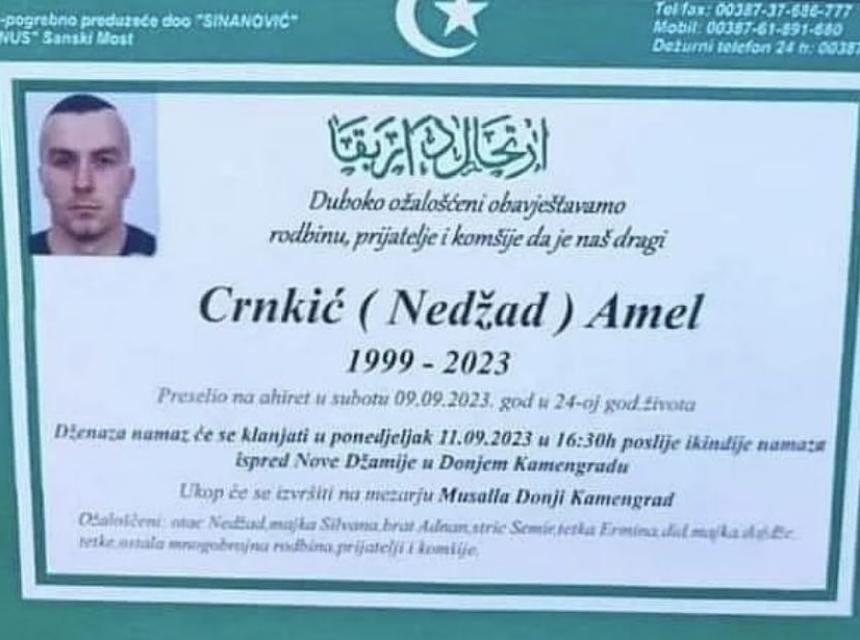 Poznat je termin dženaze tragično stradalom Amelu Crnkiću koji je preminuo nakon teške saobraćajne nesreće koja se desila u jutarnjim satima 09. septembra u mjestu Husimovci kod Sanskog Mosta.