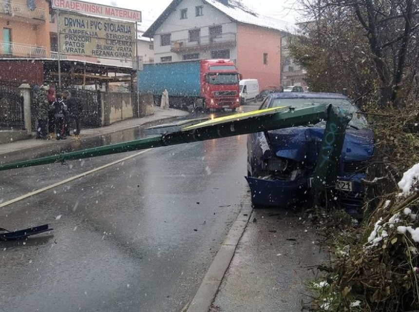 U sarajevskom naselju Buća Potok dogodila se saobraćajna nesreća u kojoj se automobil zabio u stub ulične rasvjete i prepolovio ga.