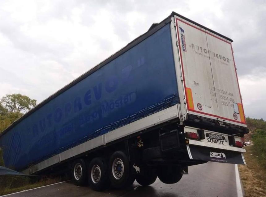 Kako javljaju vozači s lica mjesta, šleper je jednim dijelom nakon nezgode ostao na kolovozu, pa je iz tog razloga u prekidu saobraćaj na ovoj dionici puta M-6.