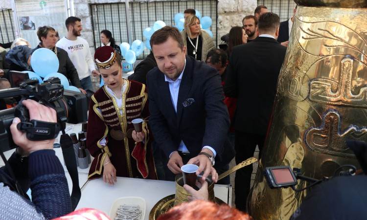 Gradonačelnik Sarajeva Abdulah Skaka družio se danas na baščaršijskom trgu sa građanima, gostima i turistima u glavnom gradu Bosne i Hercegovine, te ih poslužio bosanskom kafom, u okviru aktivnosti obilježavanja Dana grada Sarajeva, 6. aprila.