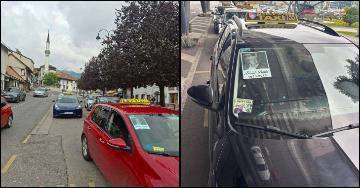 Na vozilima taksija istaknute su oznake sa imenom i godinama života Halida Bešlića, kao simbol posljednjeg pozdrava velikanu narodne muzike.