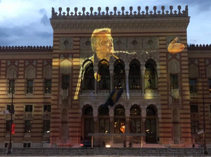 Na prigodan način su se od Ivice Osima oprostili i predstavnici Grada Sarajeva. Vijećnica je obasjana likom legendarnog trenera Željezničara, Partizana, Šturma i reprezentacije Jugoslavije.