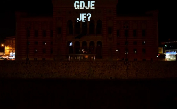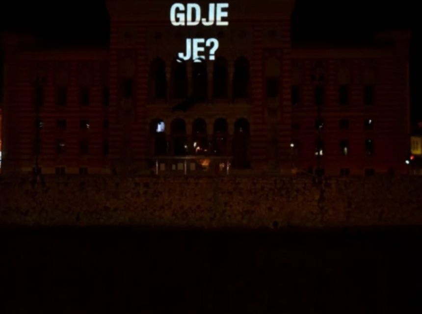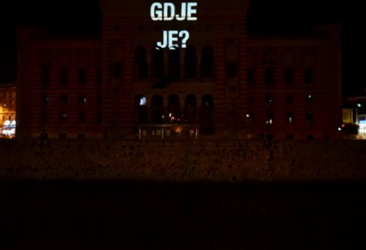 Sarajevska Vijećnica prekrivena pitanjem "Gdje su?"