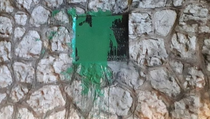 Spomen-ploča s imenom Ratka Mladića, koji je pred Međunarodnim sudom u Hagu osuđen na doživotni zatvor za genocid i ratni zločin u BiH, bojom je prefarbana dva put.