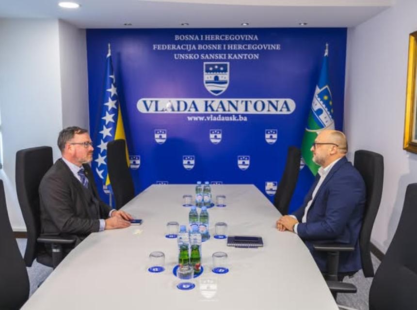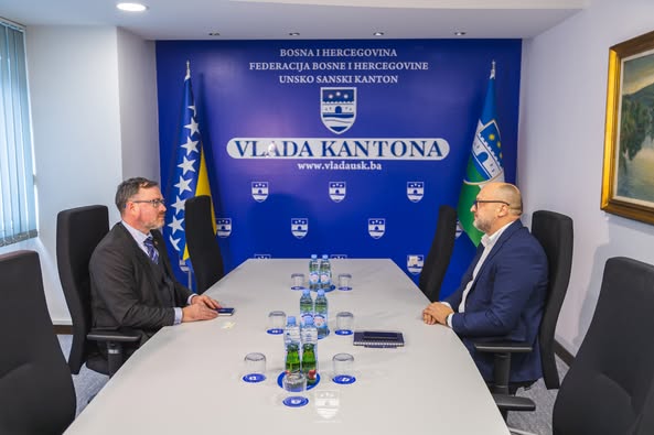 Nijaz Hušić, premijer Unsko-sanskog kantona, primio je danas ambasadora Republike Slovenije u Bosni i Hercegovini, Damijana Sedara, u zvaničnu posjetu. Tema razgovora bila je unapređenje saradnje između Slovenije i ovog dijela BiH, s posebnim naglaskom na strateške projekte i održivi razvoj.