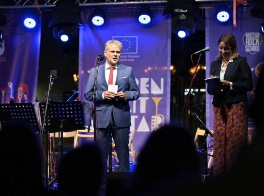 - Evropska unija sa svoje strane želi da pruži podršku i da pomogne sada kada je Grada Mostar krenuo jedan novi niz nakon 10 godina. Održani su izbori u Mostaru, sada imamo i Gradsko vijeće i opoziciju, naravno želimo da pomognemo i muzičarima i drugim umjetnicima, koji su također imali jedan težak period iza sebe. Tu su značajni i turistički potencijali koje Grad Mostar svakako ima i ovo su također dešavanja koja ujedinjuju i okupljaju građane - kazao je Satler.