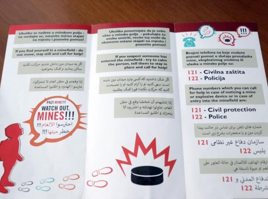 "Nakon što je počela migrantska kriza u BiH, kroz aktivnosti koje provodimo kao odgovor na migrantsku krizu, došli smo na ideju da uradimo jedan letak koji bi sadržavao osnovne informacije u slučaju da se osoba nađe u minskom polju, kako da se ponaša, kako da potraži pomoć", navodi Ličanin.