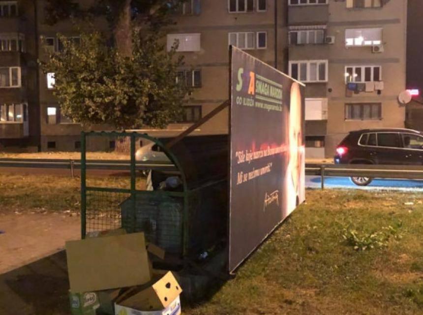Plakat rahmetli Alije Izetbegovića, bivšeg predsjednika Republike Bosne i Hercegovine i SDA, za potrebe svoje kampanje stavili su na kontejnere za smeće.