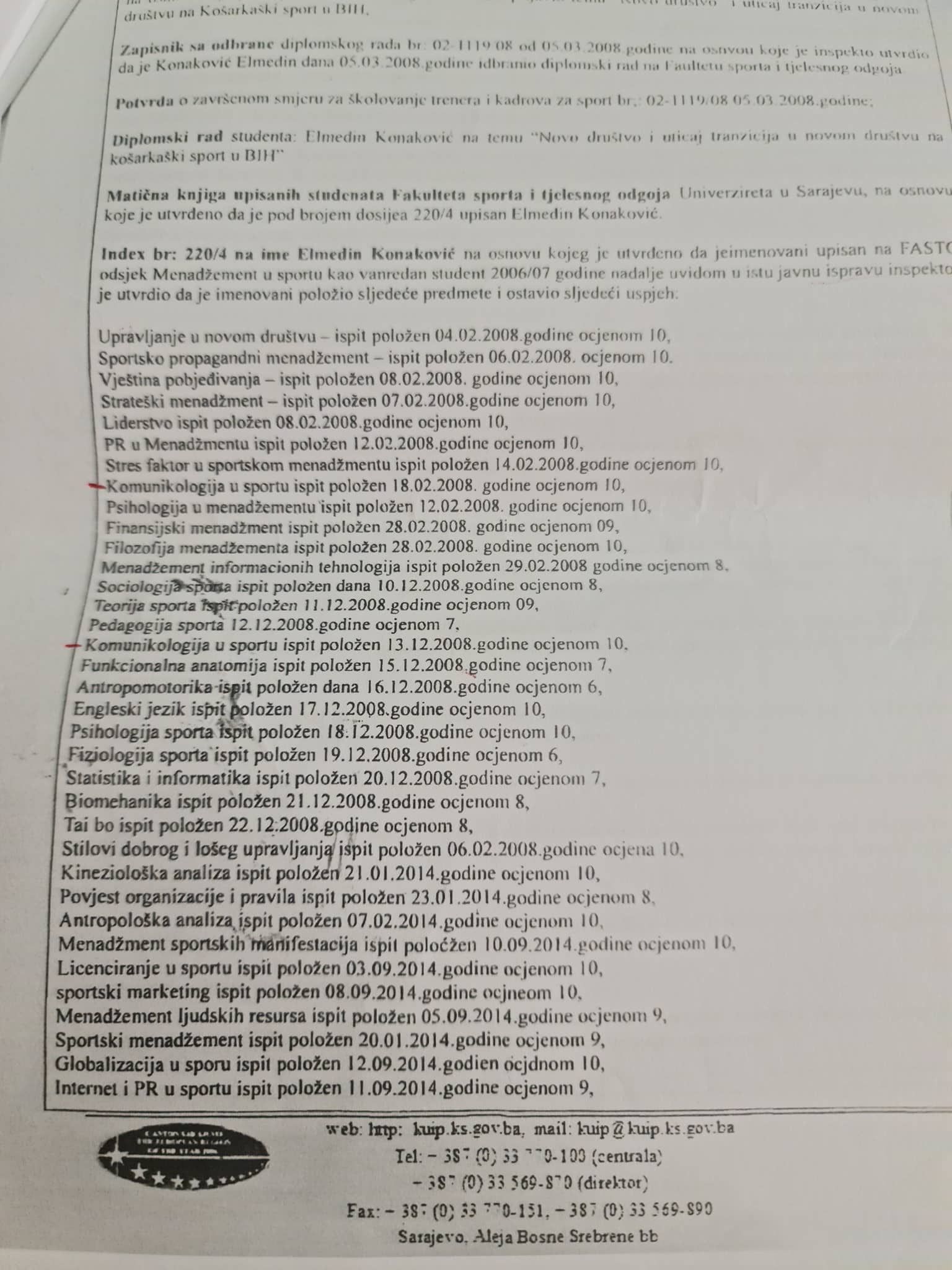 Kada se sve sumira, proizlazi da je Konakovićev put stjecanja visoke stručne spreme imao vrtoglav put koji teško da se primjenjuje bilo gdje na svijetu. Ipak, ono što je sigurno jeste da je ovaj akademski put i uspon podrazumijevao kretanje unazad, umjesto kretanja naprijed. Takvu sudbinu doživjeli su i svi kolektivi u kojima se Konaković tokom svoje sportske i profesionalne karijere pitao, a najbolja potvrda tome je Košarkaški klub “Bosna”. Naravno, takvu sudbinu danas ima i Kanton Sarajevo u kojem, po vlastitom priznanju, Konaković “lideriše procesima”.