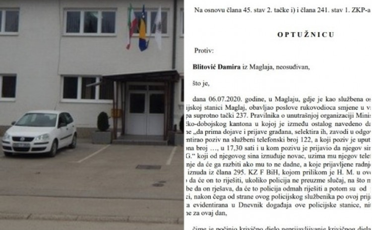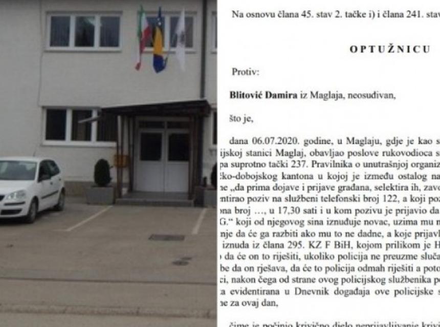 Tužilaštvo Zeničko-dobojskog kantona podiglo je optužnicu protiv šefa smjene u Policijskoj stanici Maglaj jer je 6. jula 2020. godine igorisao građanina koji je prijavio krivično djelo iznude.