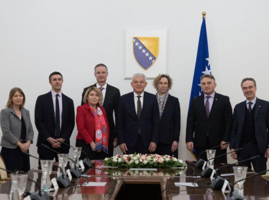 Predsjedavajući Predsjedništva BiH Šefik Džaferović i član Predsjedništva BiH Željko Komšić razgovarali su sa šefovima stalnih misija u OSCE-u, ambasadoricom Kristin Fags (Christine Fages) iz Francuske, ambasadoricom Gesom Brautigam iz Njemačke, ambasadorom Stefanom Baldijem iz Italije, ambasadorom Nilom Bušom (Neil Bush) iz Velike Britanije i ambasadorom Majklom Karpenterom (Michael Carpenter) iz SAD-a. Sastanku je prisustvovala i šefica Misije OSCE-a u BiH ambasadorica Ketlin Kavalek (Kathleen Kavalec).