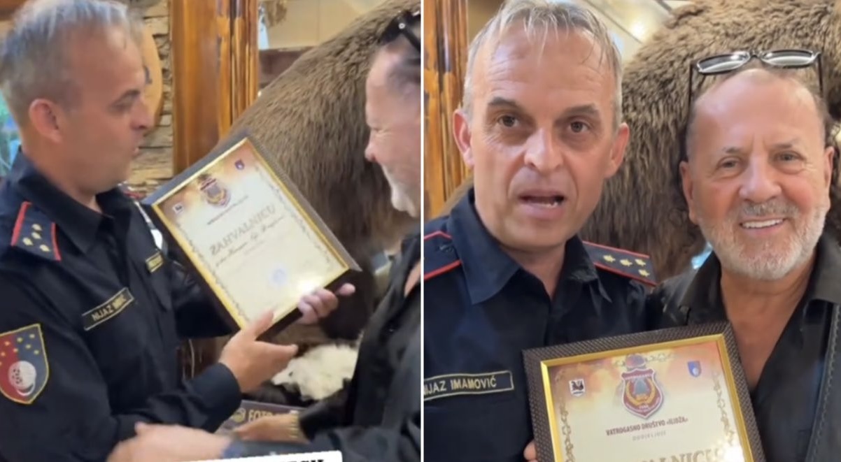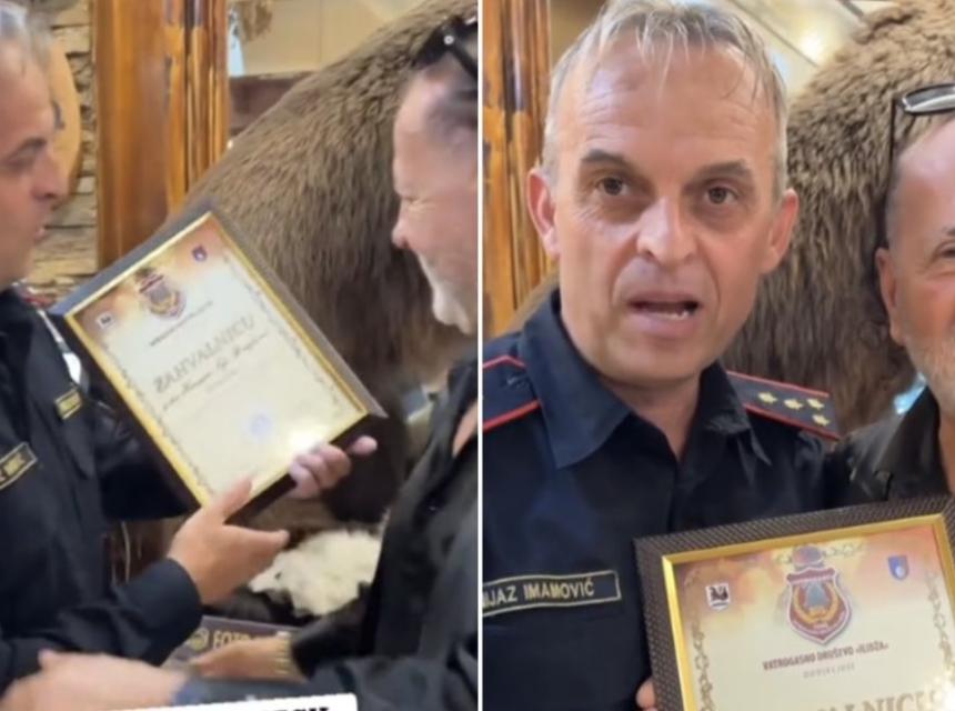 Zahvalnicu mu je uručio Nijaz Imamović, predsjednik Vatrogasnog društva Ilidža.