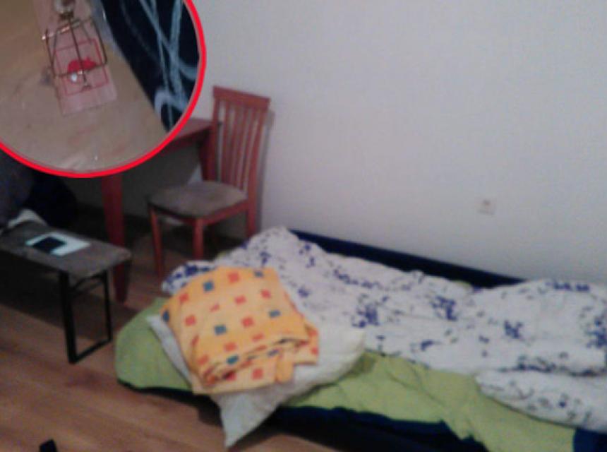 Smješten je u sobu u kojoj je bio samo jedan dušek, koji je morao dijeliti sa još jednom osobom. U sobi je bilo i drugih "podstanara", jer su po čoškovima postavljene mišolovke. Tmurnu atmosferu upotpunjavale su posude s ubudžalom vodom.
