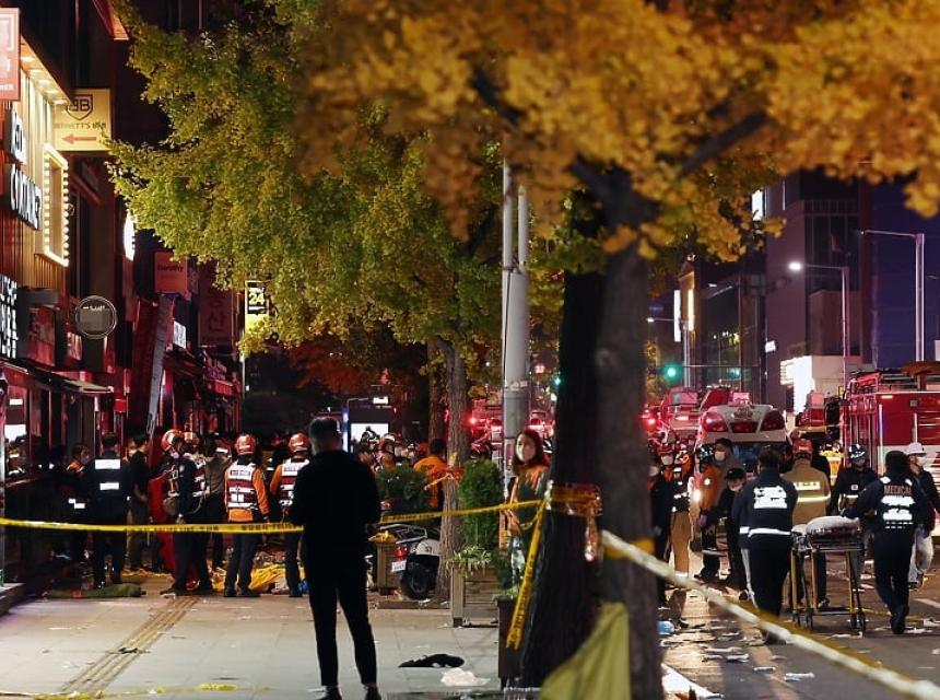 U ovoj gradskoj četvrti poznatoj po noćnom životu i uskim ulicama okupilo se sinoć desetine hiljada ljudi. Mnoge žrtve su imale srčani udar i teškoće s disanjem usljed čega je došlo i do smrtnih slučajeva. Ljudi su zatim masovno pokušavali da pobjegnu iz tog područja, no mnogi bezuspješno.
