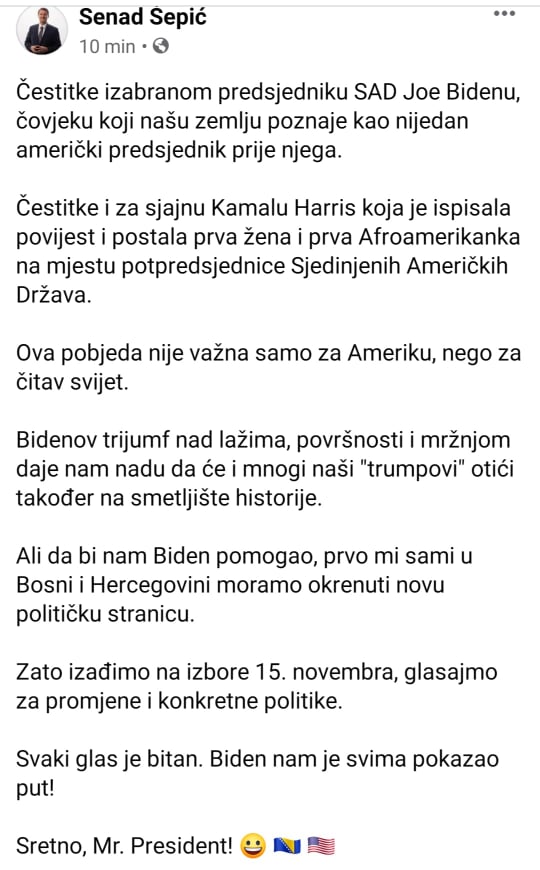 Ali da bi nam Biden pomogao, prvo mi sami u Bosni i Hercegovini moramo okrenuti novu političku stranicu.