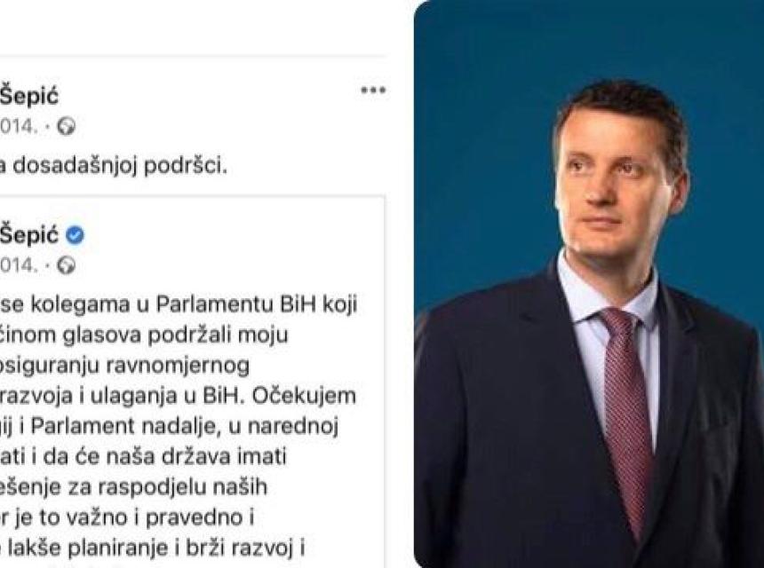 “Podsjeća Facebook- prije 7 godina- Parlament BiH je većinom glasova podržao moju ideju da BiH dobije sistemsko rješenje i Zakon o ravnomjernom razvoju i ulaganju na prostor cijele BiH.