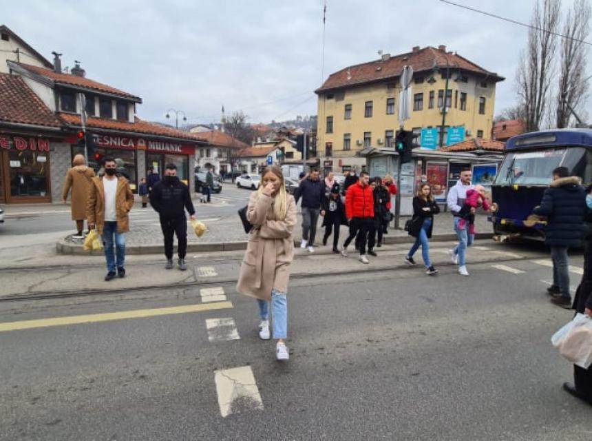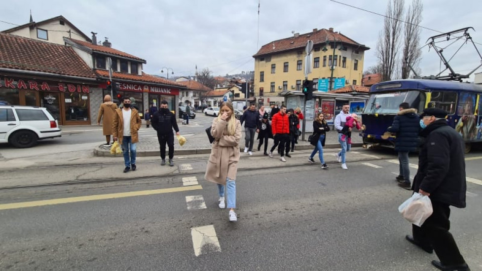 Ugodan februarski dan izmamio je brojne Sarajlije da prošetaju ili popiju kafu u obližnjem kafiću. Međutim, primijetili smo da malo ko od građana poštuje epidemiološke mjere.