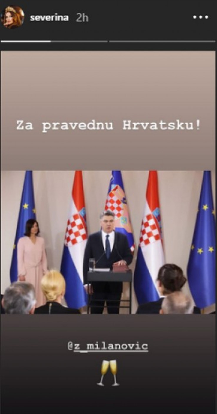 Na Insta Storyju Severina je objavila fotografiju s Milanovićeve inauguracije i poručila: "Za pravednu Hrvatsku."